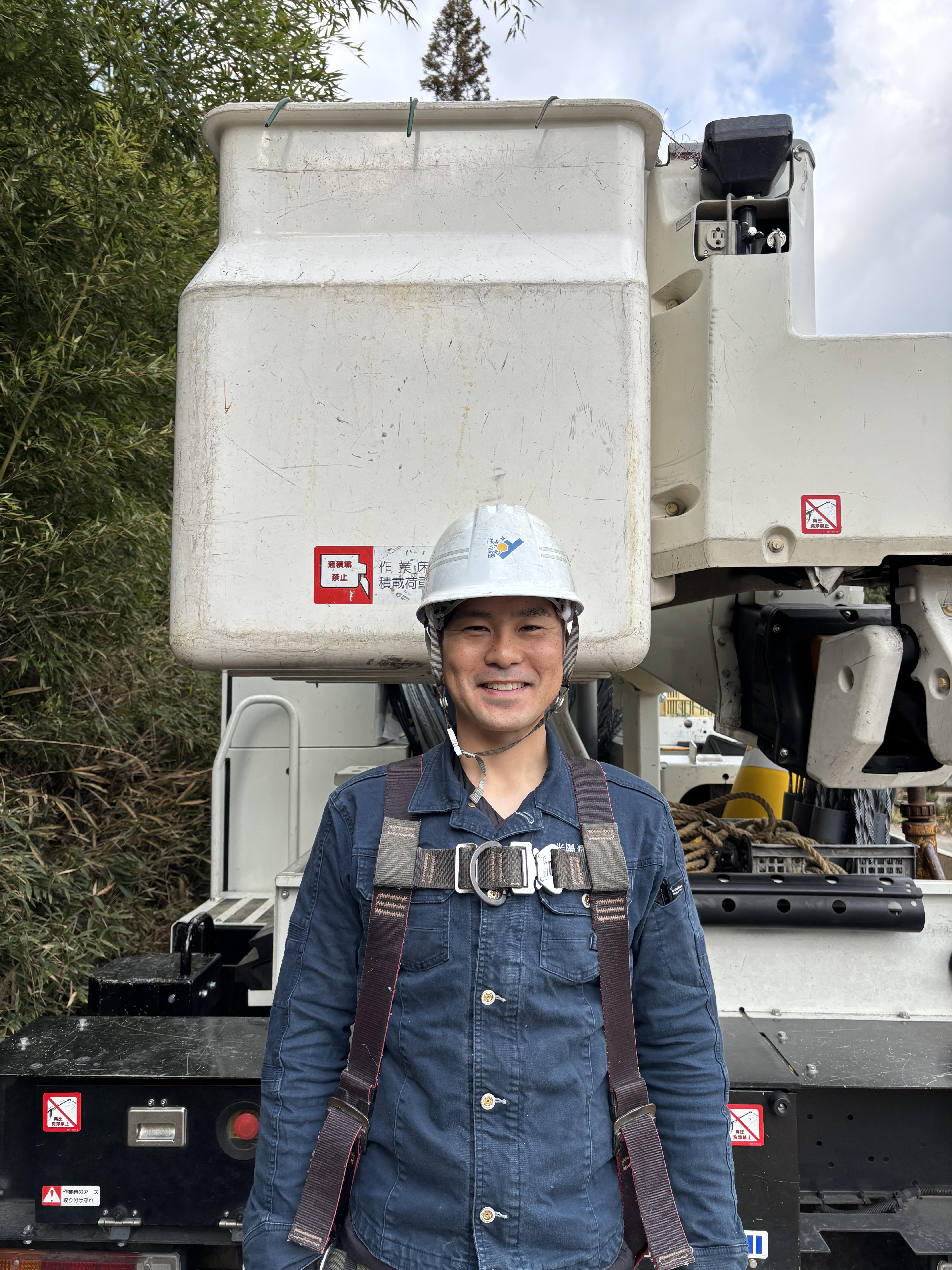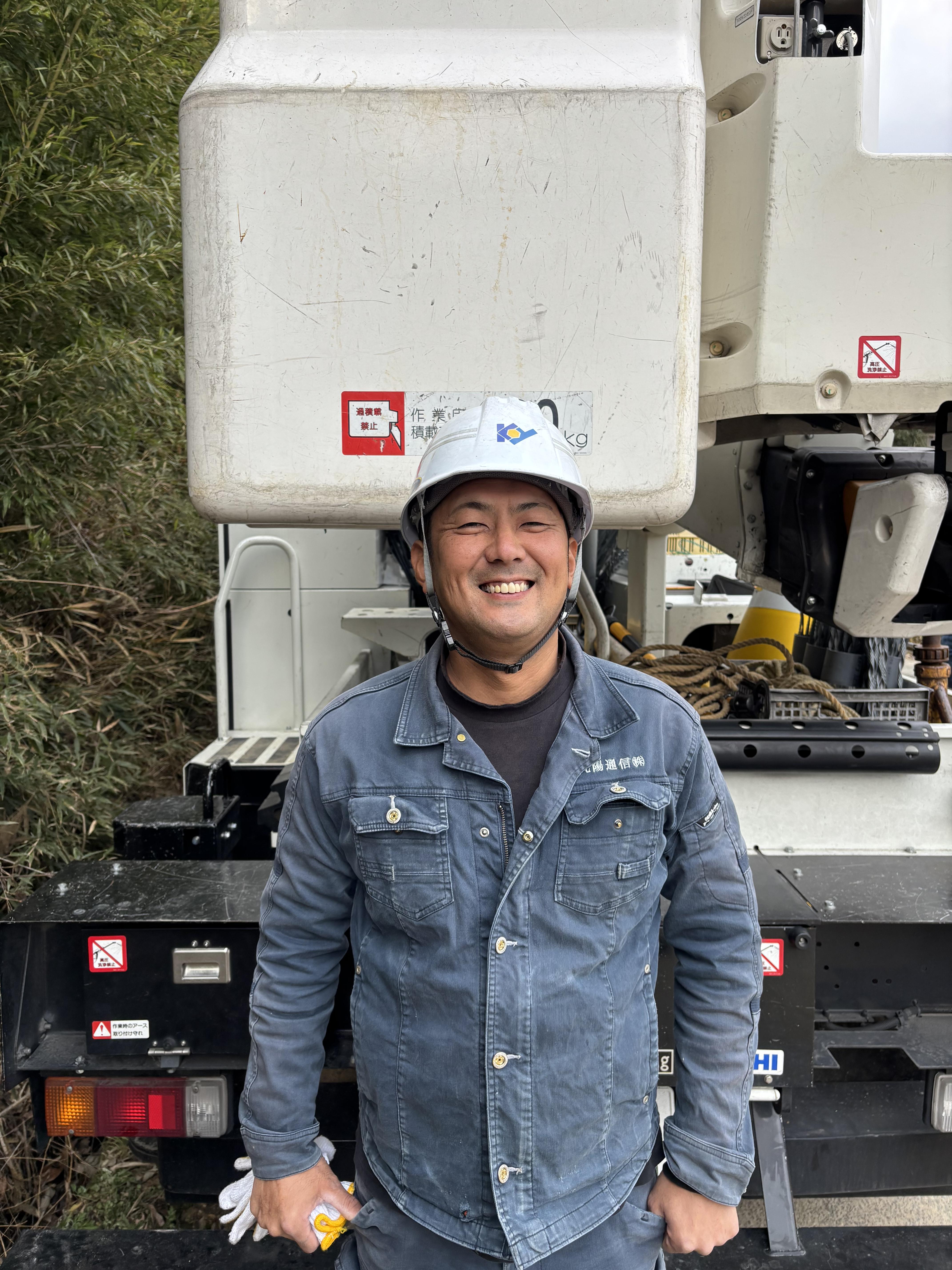 | 仕事内容 | 普段見ているテレビやネット等、インフラを支える回線の工事を行っています。屋外作業では主に、電柱の間にケーブル 等の通信線を通す架線工事です。経験を積んだのちに高所作業車に乗り、工事を行うようになります。研修期間が有るので、未経験の方も安心して働ける環境です。 |